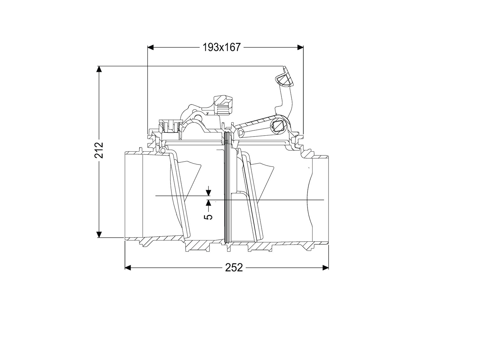ohne Zu- und Auslaufstutzen, zum Einbai in eine freiliegende Abwasserteitung, Zu-/Auslauf DN 200 Hydraulik entspricht DN 150