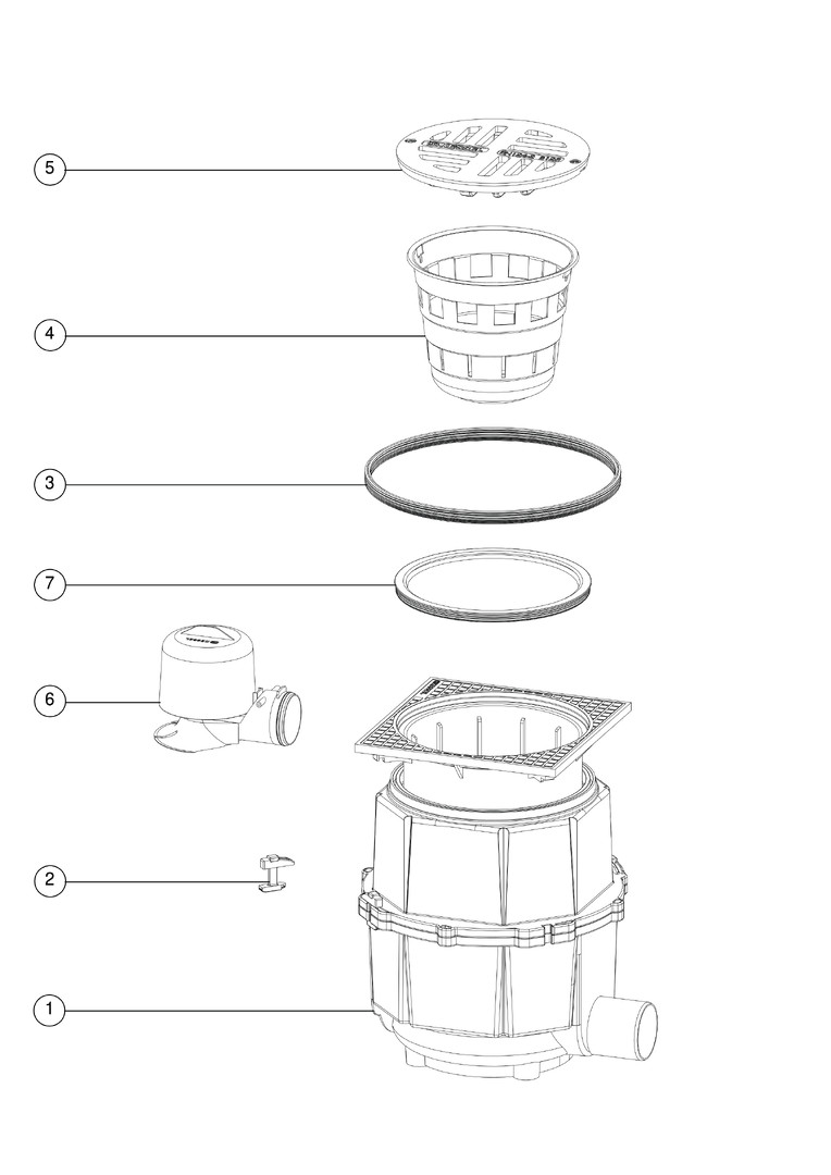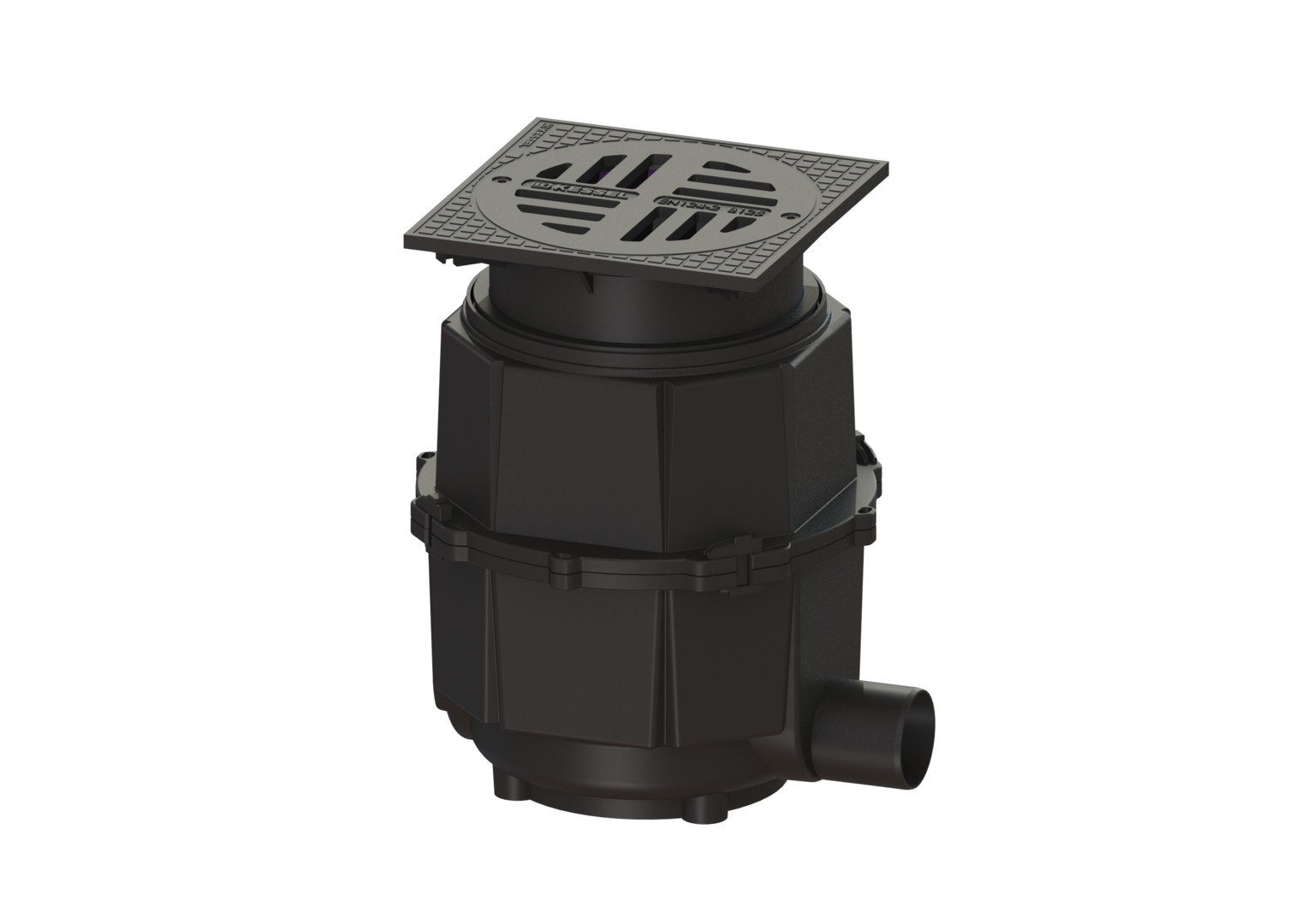 für höhere Belastungsklassen, Kunststoff, Auslauf seitlich, Geruchsverschluss, Schlammeimer, Aufsatzstück mit Schlitzrost Klasse A, Kunststoff, 400 × 400 mm, Klasse B, Guss, 400 × 400 mm, Klasse D, Guss, 450 × 450 mm, Abflussleistung 4,5 l/s, Aussparungsmaße 585 × 535 mm