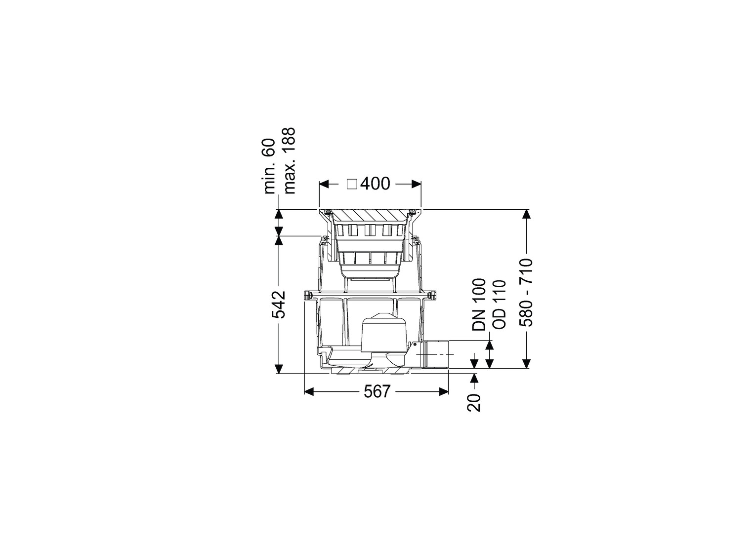 Kessel Hofablauf System 400 DN 100, Klasse A, Auslauf seitlich, Einbautiefe 580-710mm K17681463