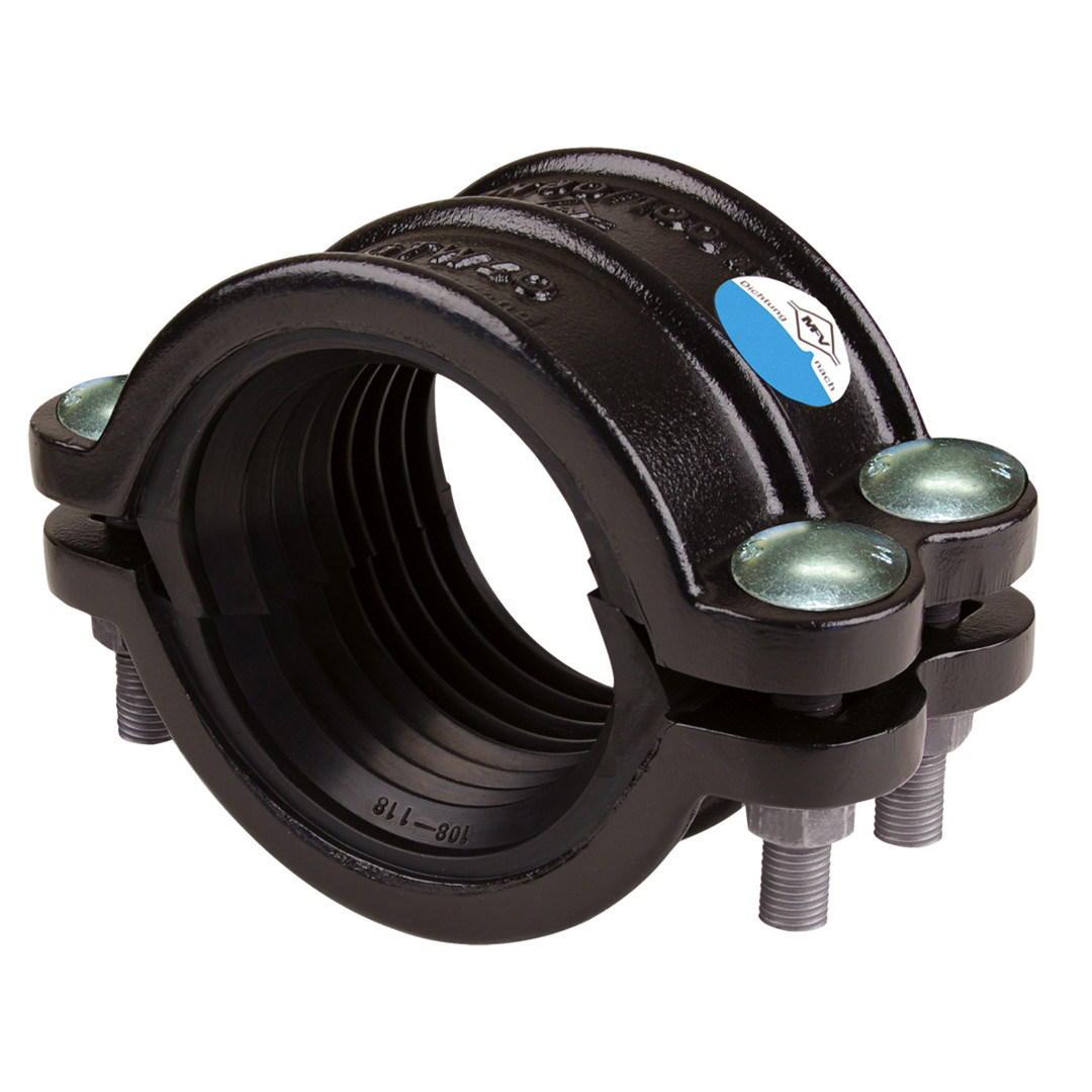 MF powered by Isiflo zweiteilige Rohrbruchdichtschelle aus Guss, 108-118 mm DN100 Länge 125 mm, Typ 101, für Wasser , EPDM Dichtung,Edelstahlschrauben, Standard PN 16