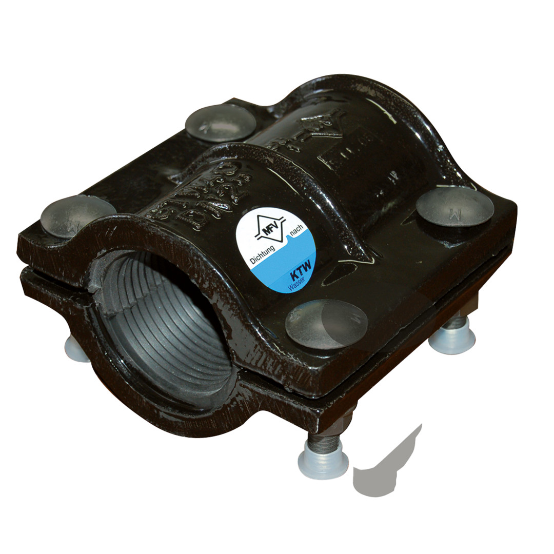 MF powered by Isiflo zweiteilige Rohrbruchdichtschelle aus Guss, 56-60 mm DN50 Länge 140 mm, Typ 102, für Wasser , EPDM Dichtung, Edelstahlschrauben, Standard PN 16
