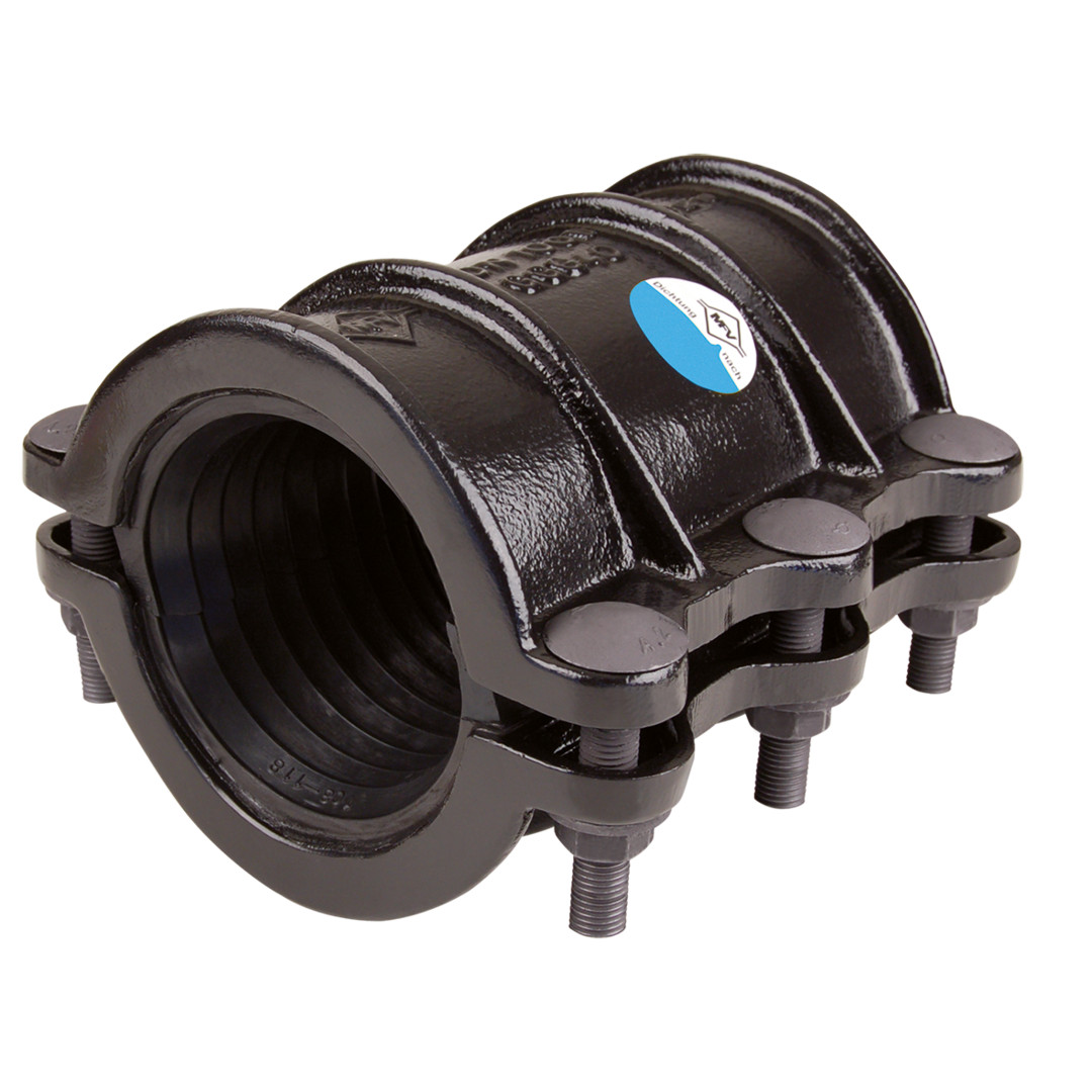 MF powered by Isiflo zweiteilige Rohrbruchdichtschelle aus Guss, doppelte Baulänge, 116-128 mm DN100 Länge 235 mm, Typ 112, für Wasser , EPDM Dichtung, Edelstahlschrauben, Standard PN 16