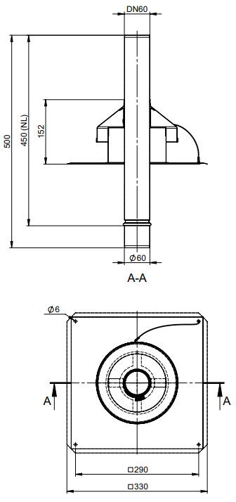MHG Kaminkopfabdeckung Atec DN 60, 330 x 330 x 450 mm, starr, Edelstahl