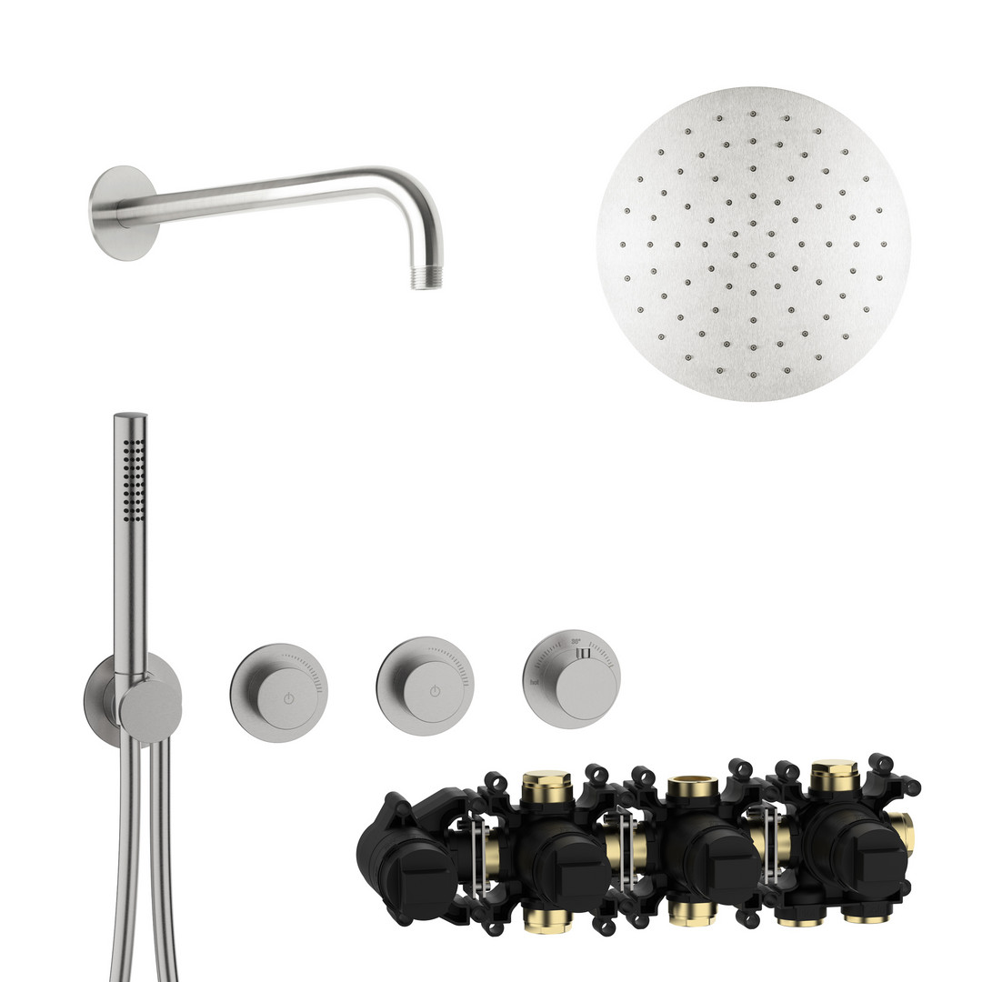 MODUL7 PUSH-Thermostat-Set P-RB250 Wandarm Regenbrause Ø250mm Edelstahl
