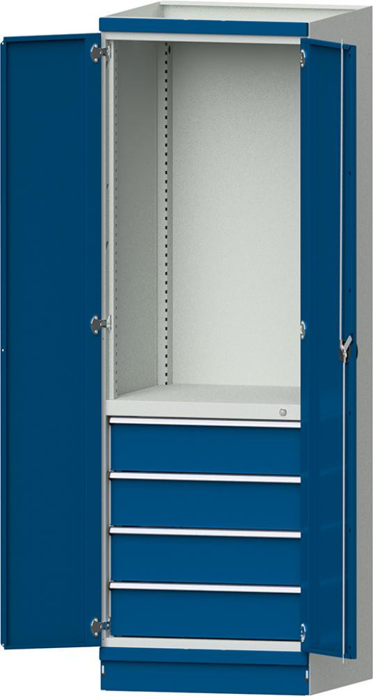 Modulschrank Modell 2409 B865xT720xH2200mm RAL 7035/5010 mit Türen 4 Schubladen K23556083
