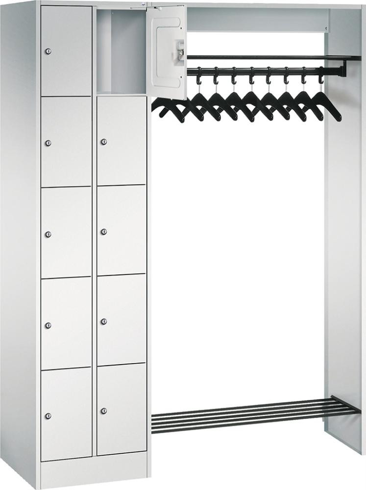 Offene Garderobe B1430xT480xH1950 mm RAL 7035 10 Bügel 2x5 Fächer B240 mm CP K23529400