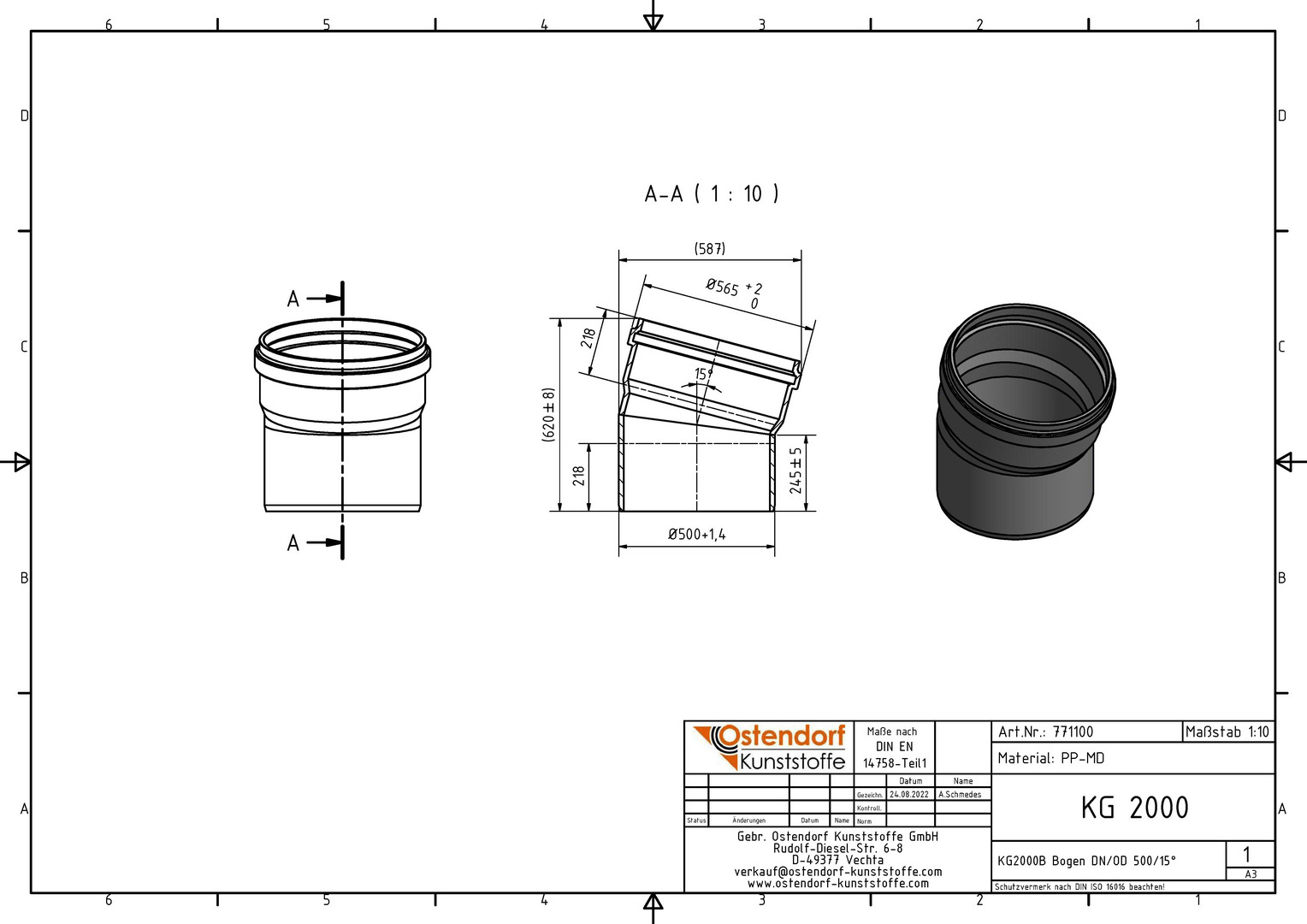 Ostendorf KG2000 Bogen B DN/OD 500, 15Grad