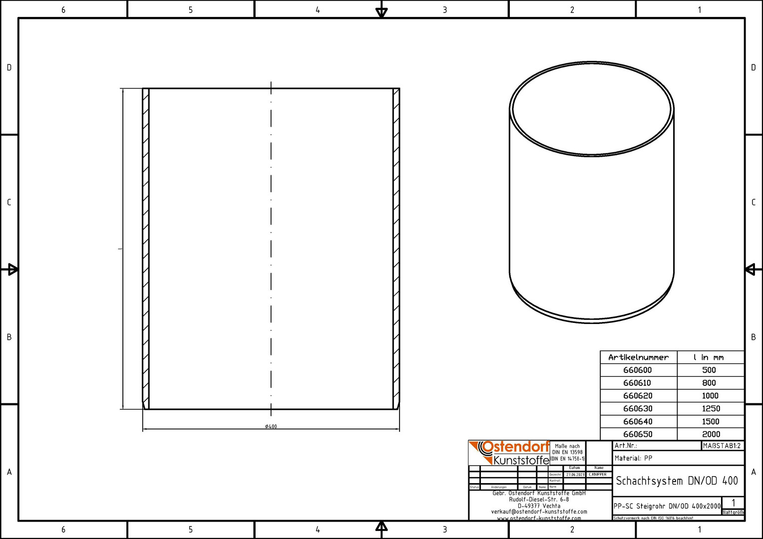 Ostendorf Steigrohr 2000 mm, grün, DN 400, PP