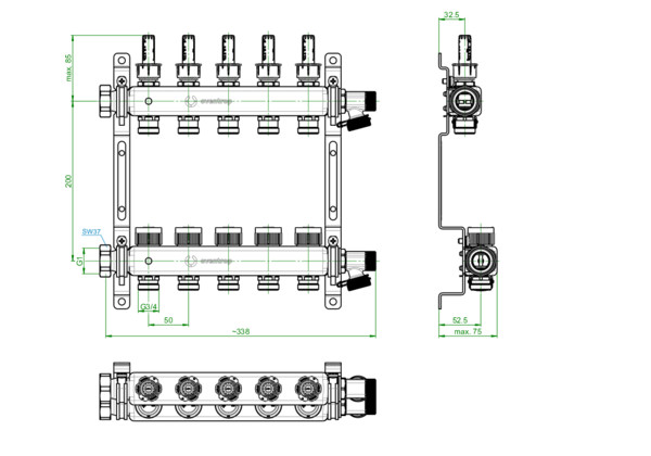 Oventrop Heizkreis-Verteiler Multidis SF 5 Kreise, mit Durchfluss-, Mess- und Reguliereinsätzen im Vorlauf K20587486