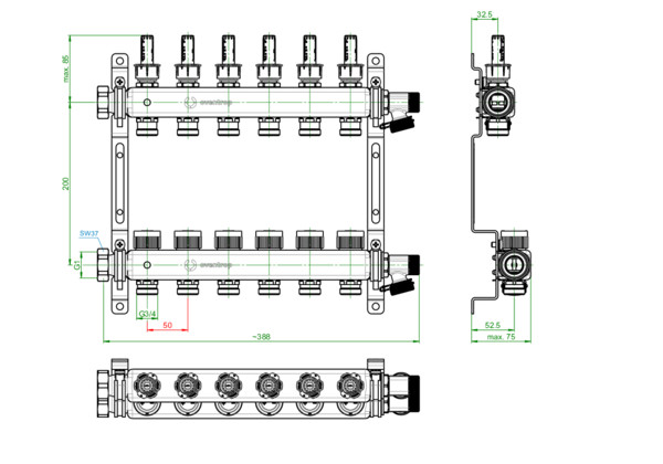 Oventrop Heizkreis-Verteiler Multidis SF 6 Kreise, mit Durchfluss-, Mess- und Reguliereinsätzen im Vorlauf K20587487
