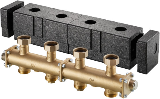 Oventrop Modulverteiler DN 25, mit Isolierung, Messing, für 3 Heizkreise, für Regumat
