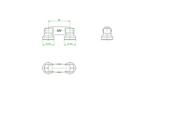 Oventrop Montagebrücke DN 20, G 3/4 AG, Rohrabstand 50mm