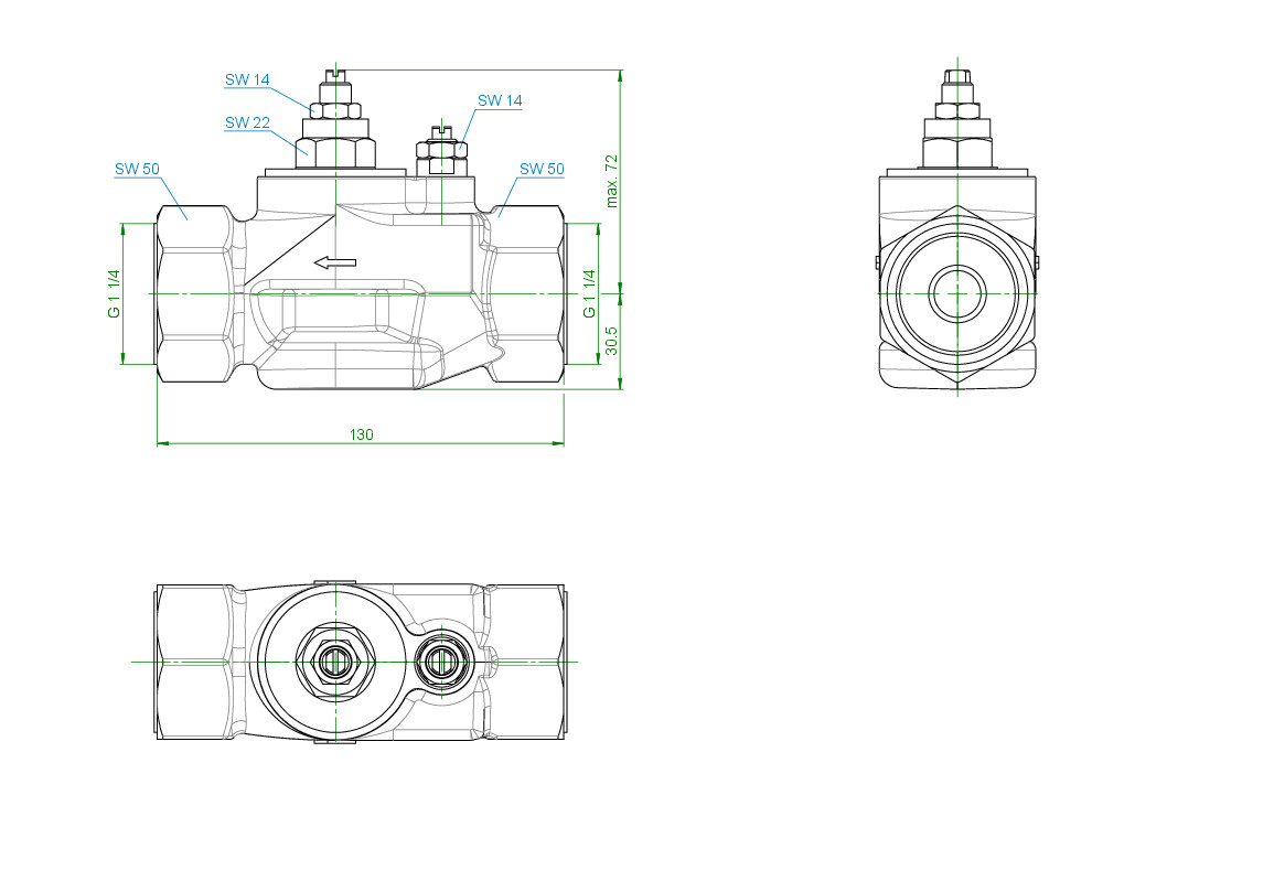 Oventrop Verschneidearmatur DN 32, G 1 1/4, Kopfstück Messing, Gehäuse Rotguss
