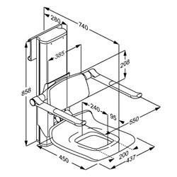 PLUS Duschsitz 450, PÖ,elek.hö.v.+ seitl Weiß, m. Armlehnen + kabelg.Fernb.