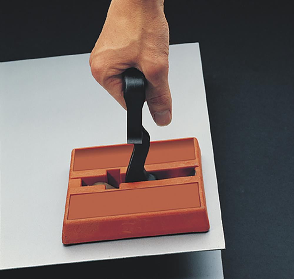 • Erleichtertes Abhebeln von Stahlblech durch Excenter am D-Griff