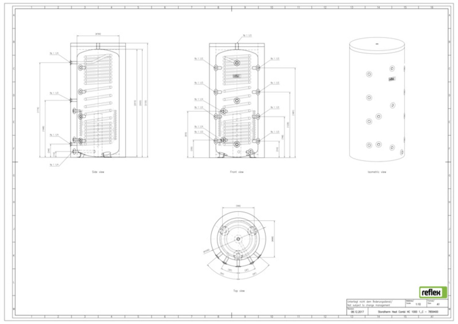 Reflex Pufferspeicher Storatherm Heat Combi HC 1000/1_C, mit Isolierung, mit Glattrohrwärmeübertrager, silber