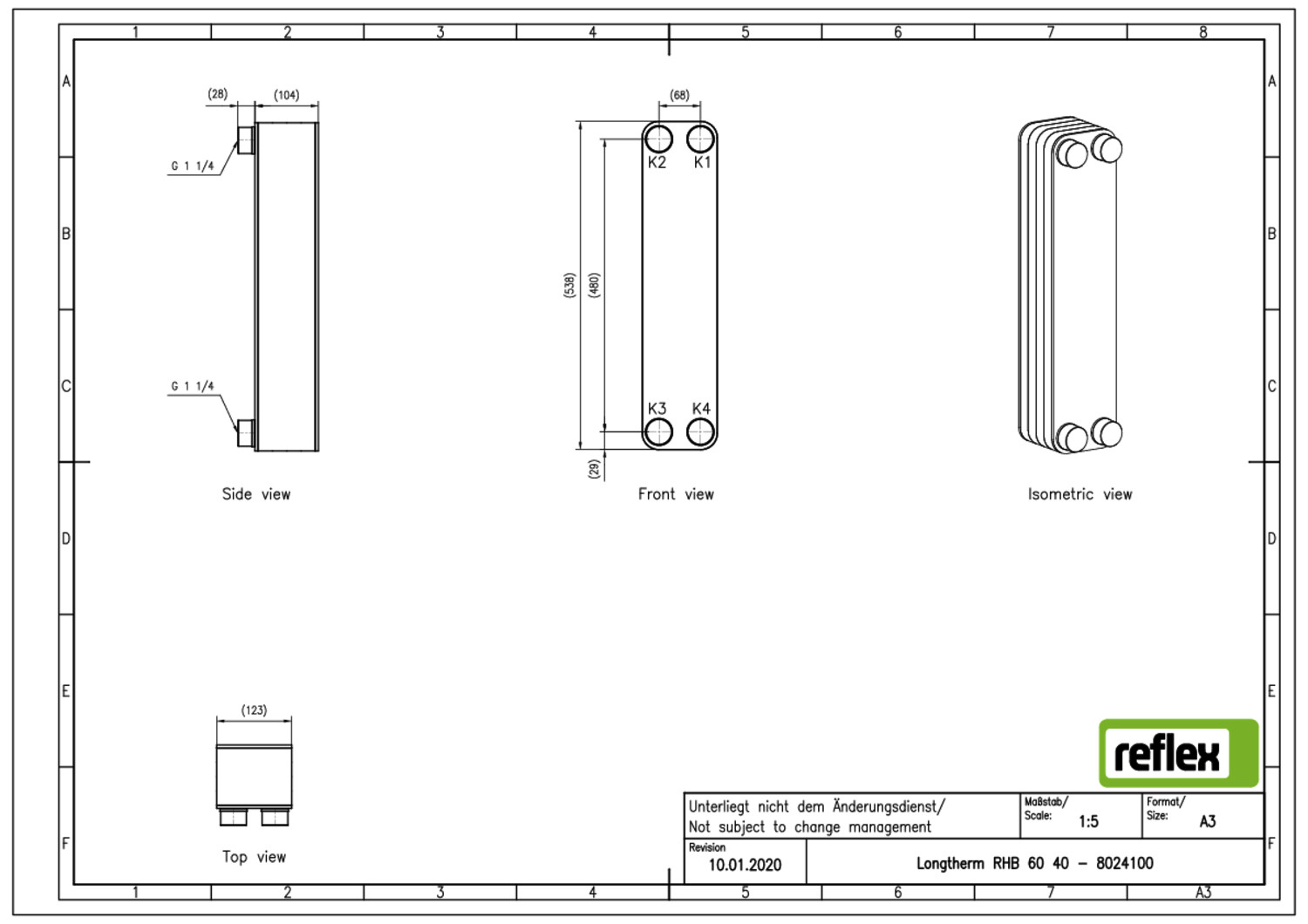 Reflex Wärmetauscher Longtherm RHB-31-80, Plattenzahl 80, gelötet, Edelstahl, eingängig K10576664