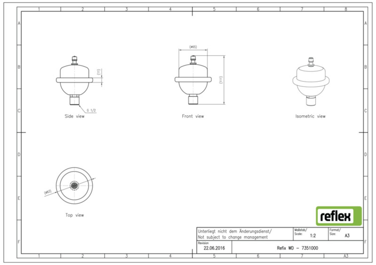 Reflex Wasserschlagdämpfer Refix WD 10 bar, 70 °C, weiß
