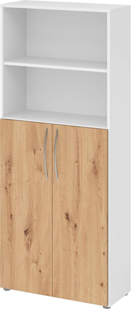 Regal 5OH, 3OH K: Weiß / F: Asteiche 80x34,6x188 cm (BxTxH) Türen unten BM 4770