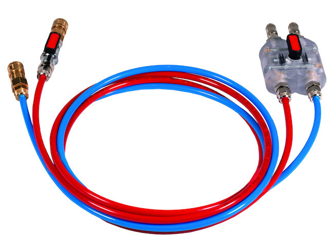 für alle VM242, roter und blauer Druckschlauch, Anschlüssen und Kugelventil, ISO 7628-Cat2