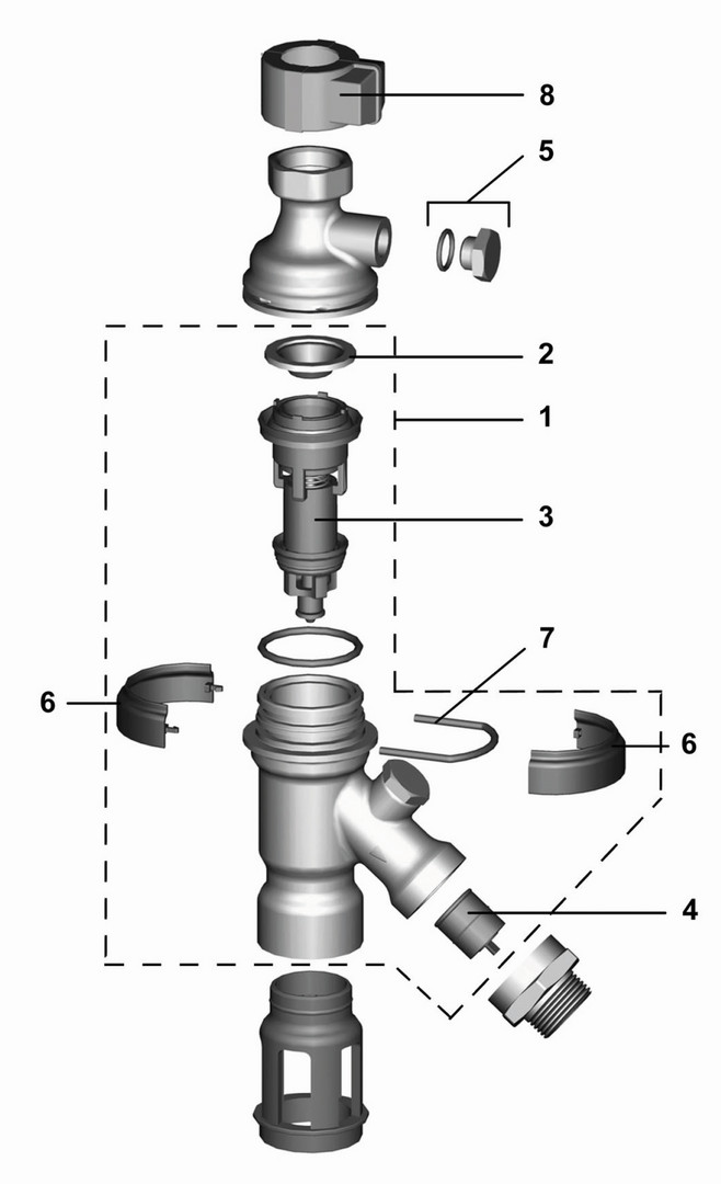 Einbaulage vertikal, Ablassventil nach unten