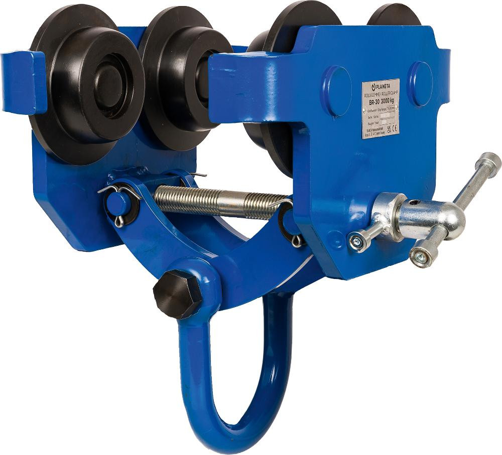 • UVV-Sicherheit: die Trägerklemme mit integriertem Rollfahrwerk entspricht der UVV für senkrechte Lastaufnahme