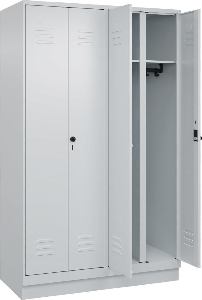 S/W-Gard.-Schrank CLASSIC B1200xT500xH1950 mm RAL 7035/7035, 4 Abteile mit 100 mm hohem Sockel