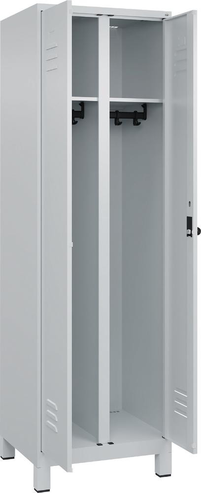 S/W-Gard.-Schrank CLASSIC B600xT500xH1950 mm RAL 7035/7035, 2 Abteile mit 100 mm hohen Füßen