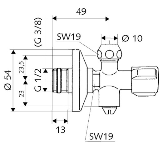 mit COMFORT-Griff, mit Entleerungsstutzen als Ablassmöglichkeit bei Frostgefahr, gemäß DIN 3227, mit Eckventil, selbstdichtendes Anschlussgewinde (ASAG easy), langer Schubschaft, zugfeste Messing-Konus-Quetschverschraubung, Schubrosette Ø 54 mm, aus Messing konform TrinkwV, Oberfläche chrom, Anschluss DN 15 G 1/2 AG mit ASAG easy, Abgang: Ø 10 mm (DN 10 G 3/8 AG), Zertifikate: ACS