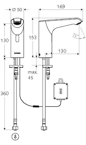Hochdruck Kaltwasser/vorgemischtes Wasser, Infrarot-Sensor gesteuert, Batteriebetrieb, geeignet zur Vernetzung mit Wassermanagement-System SWS, parametrierbar über Single Control SSC, mit Infrarot-Sensor Einlocharmatur, Infrarot-Sensor-Elektronik, programmierbar, Axialmagnetventil 6 V mit Vorfilter, Strahlregler, Anschlusskabel 220 mm, mit Steckverbinder 3-polig, Schutzklasse IP 65, Batteriefach 6 V, Schutzklasse IP 65, 4x AA Alkalibatterien 1,5 V, flexibler Anschlussschlauch Clean-Fix S G 3/8 IG x 400 mm, mit integriertem Rückflussverhinderer (RV, EN 1717: EB) und Vorfilter, Befestigungsmaterial für Waschtischmontage, Einstellmöglichkeiten über SWS/SSC: Sensor-Reichweite (kurz/mittel/lang), Programmierung über Nahreflex (Aus/Ein), max. Laufzeit (1-360 s), Nachlaufzeit (0,6-60 s), Stagnationsspülung (Aus/5-600 s, alle 1-240 h nach letzter Spülung/alle 1-240 h), Dauerspülung für thermische Desinfektion, mit Verbrühungsschutz (Aus/15-600 s), Dauerfluss (Aus/15-600 s), Energiesparmodus (Aus/1-254 h nach letzter Nutzung), Reinigungsstopp (Aus/60-360 s), Einstellmöglichkeiten über Nahreflex: Sensor-Reichweite (kurz/mittel/lang), Stagnationsspülung (Aus/30 s, alle 24 h nach letzter Spülung/alle 24 h), Dauerspülung für thermische Desinfektion, mit Verbrühungsschutz (Aus/300 s/120 s), Reinigungsstopp (Aus/60 s), Durchfluss max. 5 l/min druckunabhängig, Fließdruck 1,0-5,0 bar, max. Ruhedruck 8 bar, max. Betriebstemperatur 70 °C (80 °C für thermische Desinfektion), Gehäuse aus Messing, wasserführende Teile aus Kunststoff, Oberfläche chrom, Zertifikate: P-IX 29072/IO, ACS, Belgaqua, WELL public, Geräuschklasse I, Durchflussklasse O