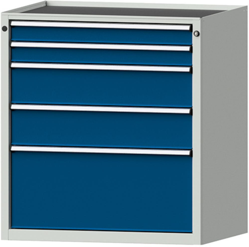 • Oberfläche: Gehäuse RAL 7035 lichtgrau/Schubladenfronten RAL 5010 enzianblau