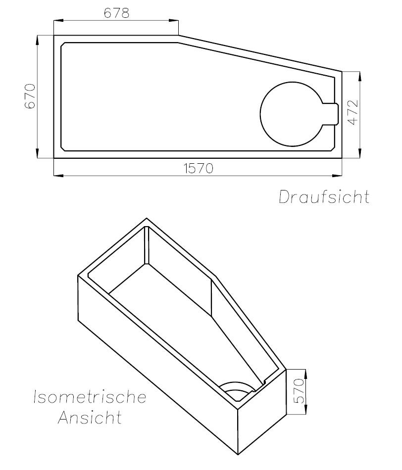 Schedel Badewannenträger GALATEA Splash SH 160/75 rechts, 160 x 75/50 cm, Höhe 57cm K19726075