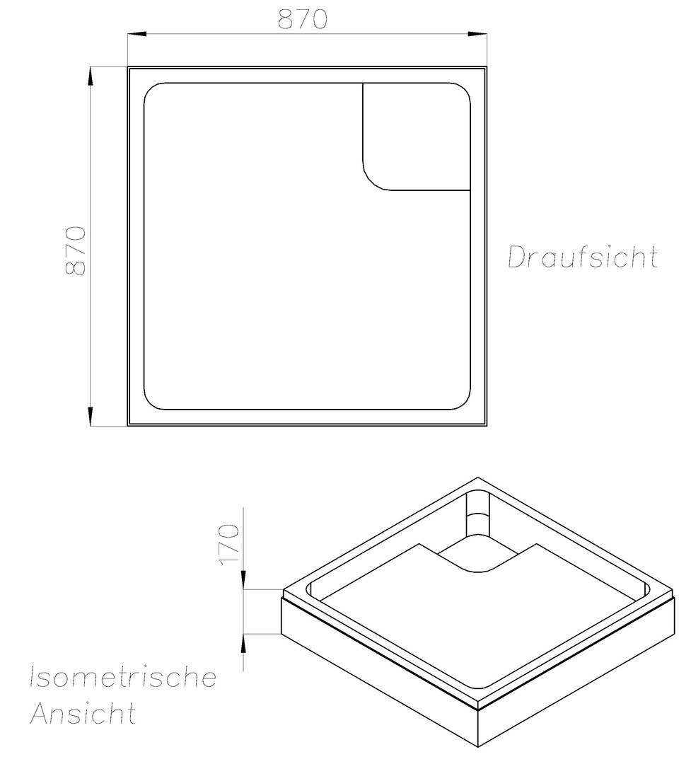 Schedel Duschwannenträger Vitra Norm 90 x 90 x 7,5 cm, Höhe 17 cm