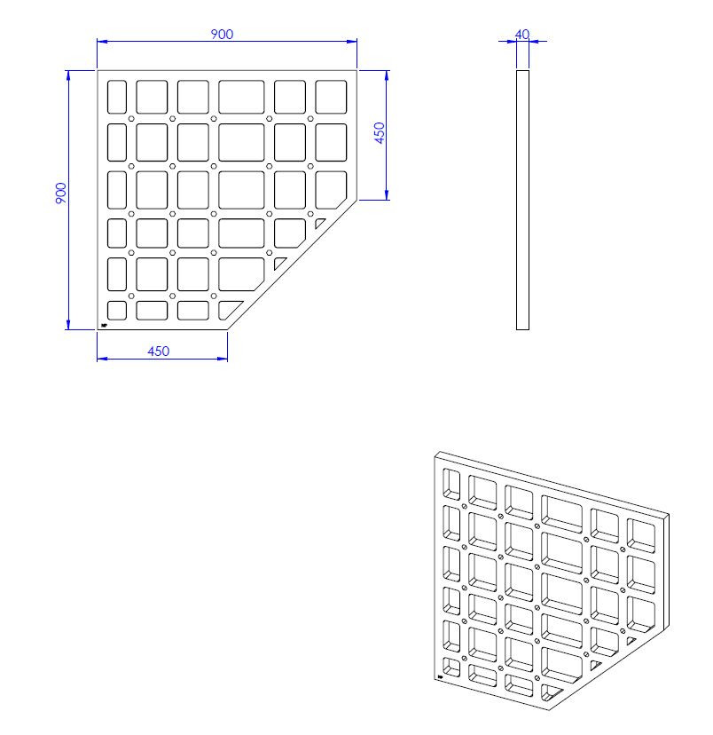 Schedel Fünfeck-Unterbauelement quadroU Kessel 90 x 90 x 4 cm, 1 Montagekleber