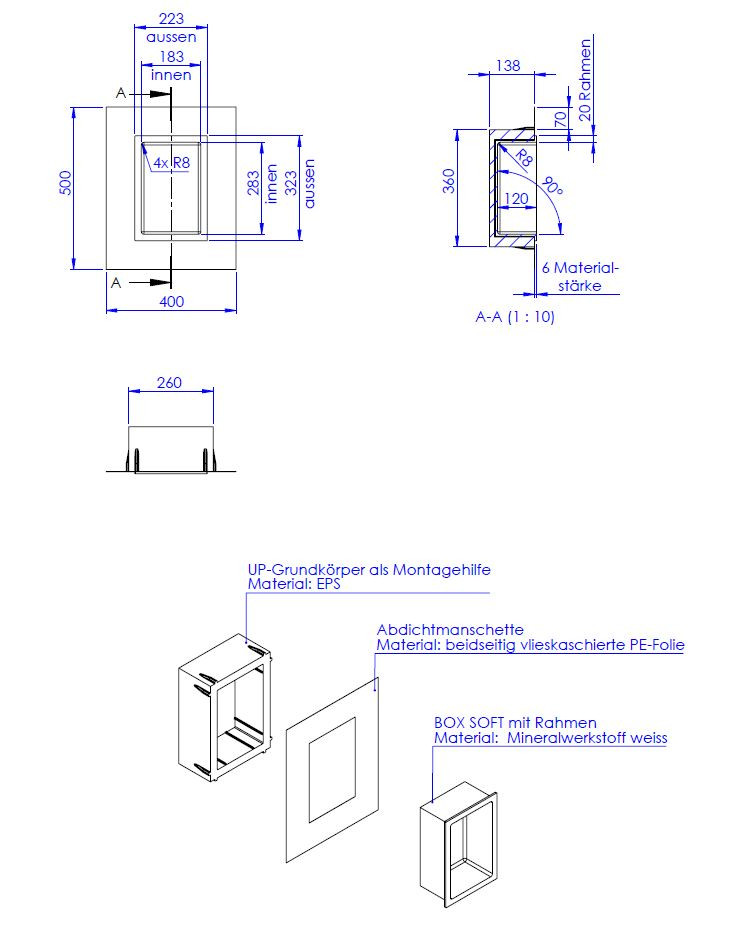 Schedel Nischeneinsatz PLUSbox Soft MULTISTAR VISION 300 x 600 x 120 mm, mit Rahmen, bianco weiß K24589333