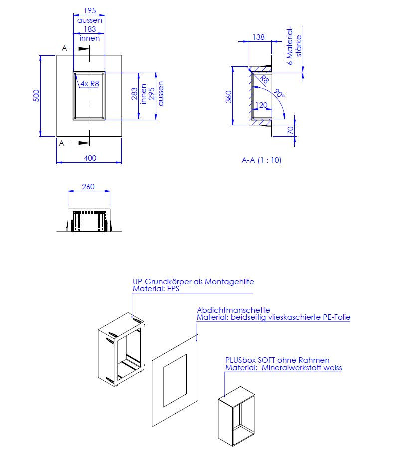 Schedel Nischeneinsatz PLUSbox Soft MULTISTAR VISION 300 x 200 x 90 mm, rahmenlos, bianco weiß K24589326