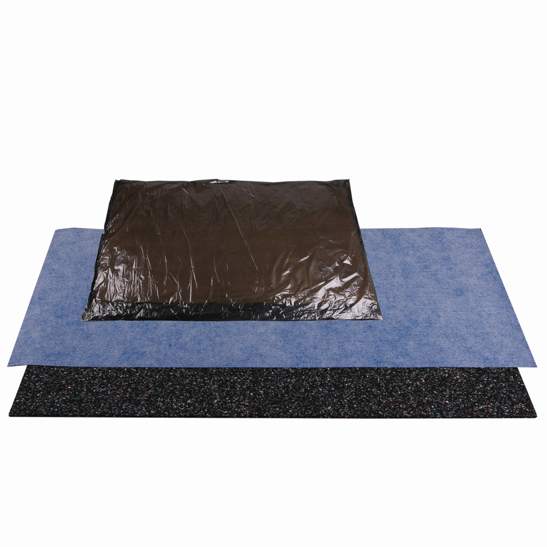 nach DIN 4109/VDI 4100, für schutzbedürfigen Raum UG, bestehend aus vlieskaschierte PE-Abdichtungsbahn, Gummigranulatmatte 0,7 cm