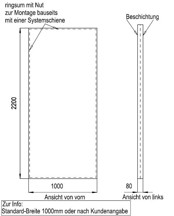 Schedel Systemwand gerade, 100 x 220 x 8 cm