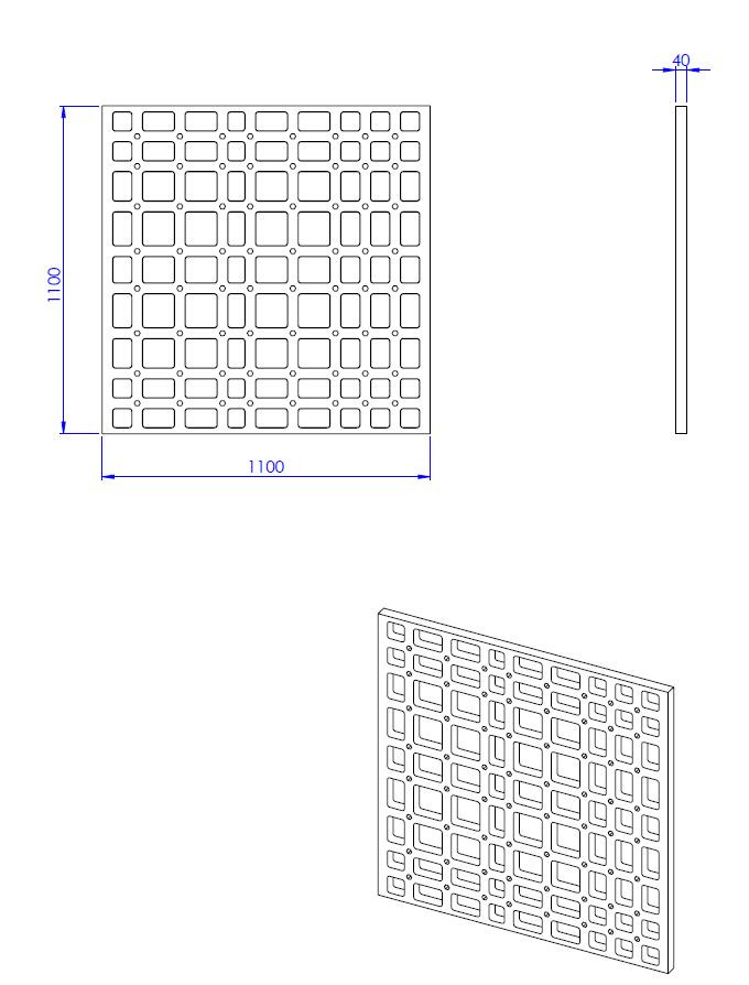 Schedel Unterbauelement quadroU Kessel 110 x 110 x 4 cm, quadratisch, 2 Montagekleber K19725051
