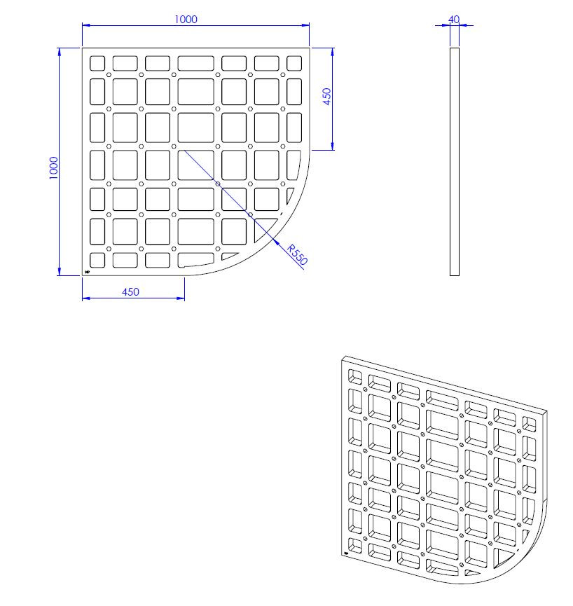 Schedel Viertelkreis-Unterbauelement quadroU Kessel 100 x 100 x 4 cm, 1 Montagekleber