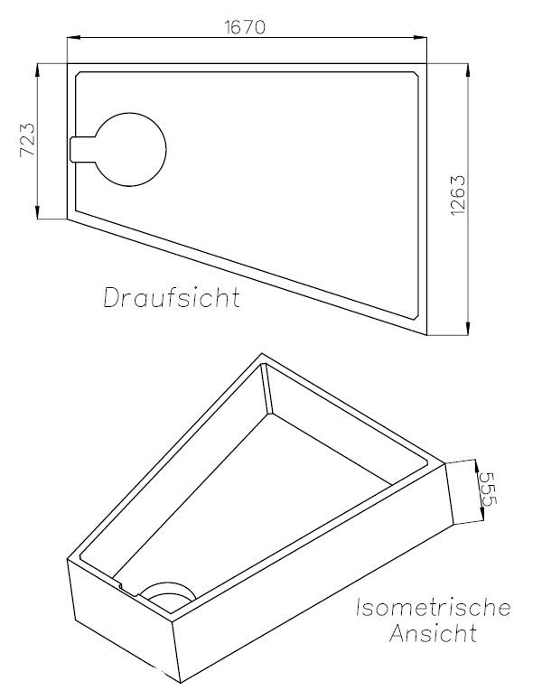 Schedel Wannenträger Bette Space 170 x 130 mm, L, Ecke rechts, Höhe 55,5cm