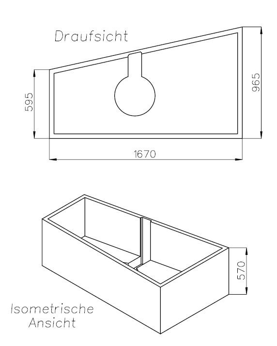 Schedel Wannenträger Duravit Paiova 170 x 130 cm, links, Höhe 57cm K19725940