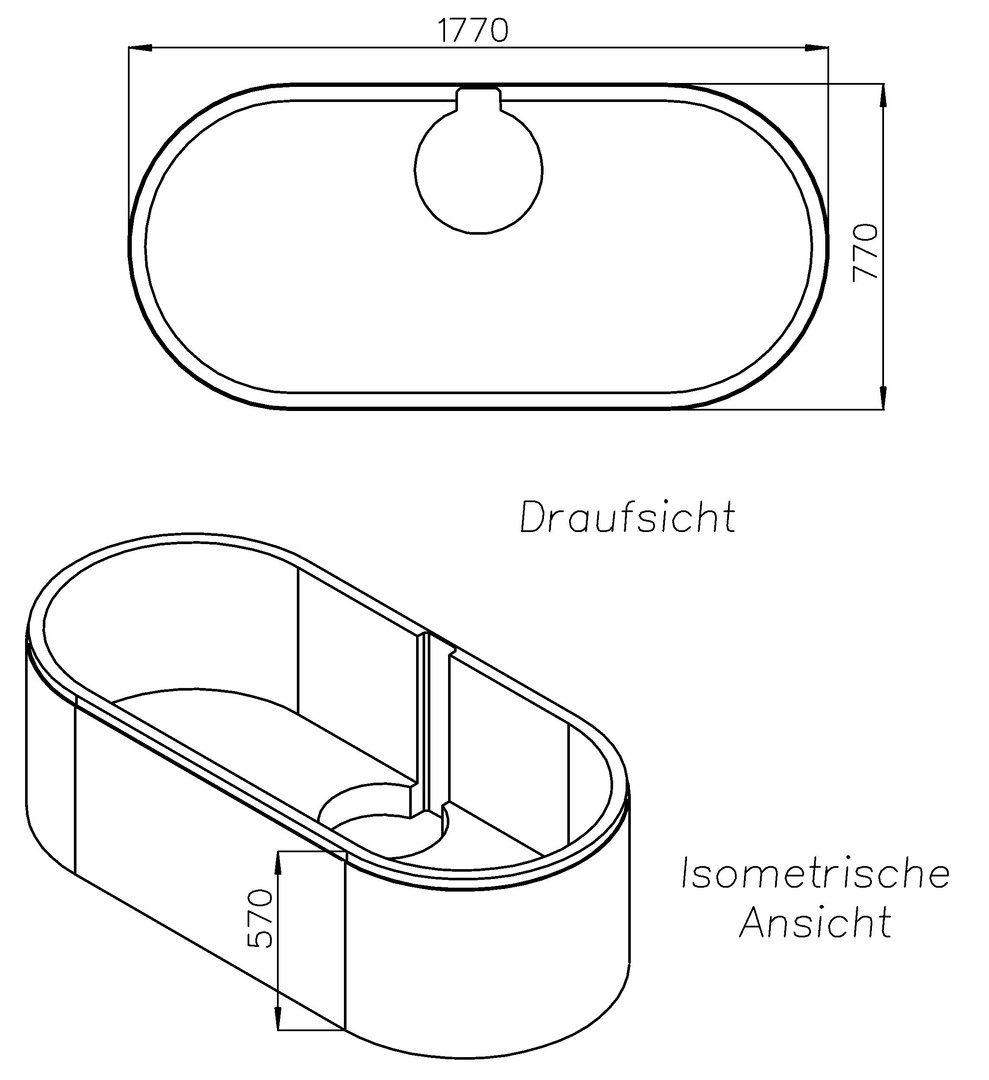 Schedel Wannenträger Duscholux XL-Portofino 113 180 x 80 cm, Höhe 57cm, oval