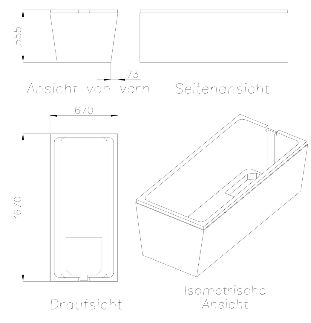 FORMAT Tec Wannenträger Standard 170 x 70 cm, rechteckig, mit 2 schrägen Seiten K19230528