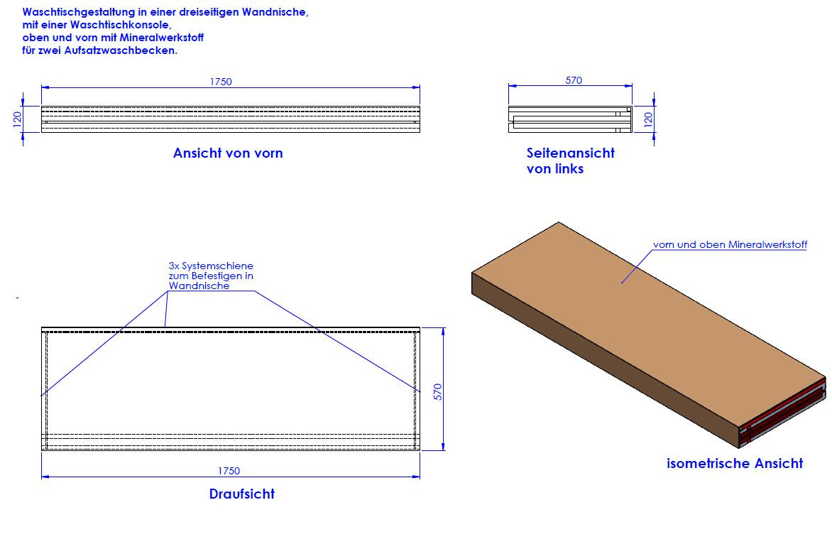 Schedel Waschtischkonsole MULTISTAR VISION für zwei Aufsatzwaschtische, 12 x 175 x 57 cm