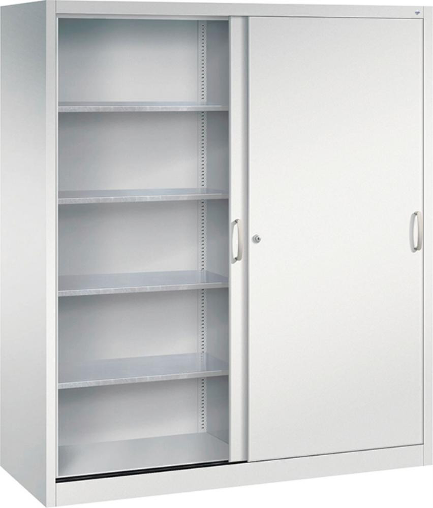 Schiebetürenschrank B1600xT500xH1950 mm RAL 7035, 8 Fachböden mit Mitteltrennwand CP K23515789