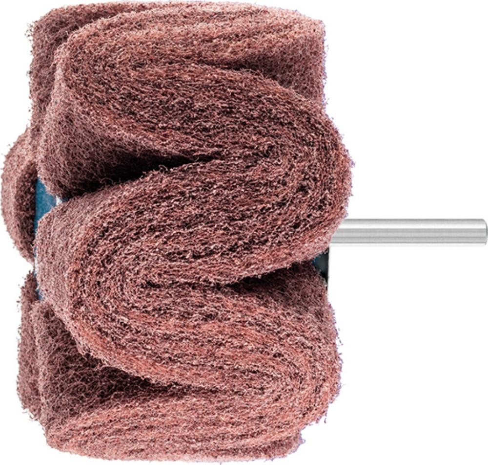 • Stark gewellte Schleifvliesstreifen um einen Kern gewickelt