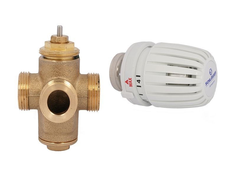 Schlösser Dreiwege-Thermostatventil-Set 5510 DN 15, symmetrisch, mit Thermostatkopf, HK-Anschluss rechts