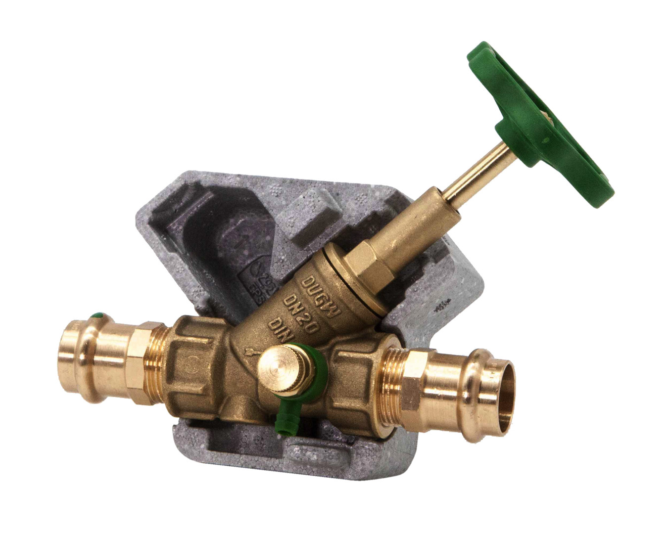 Schlösser Freistromventil DG1518 DN 20, 22 mm, mit Dämmschale, IG, mit Entleerung, steigende Spindel