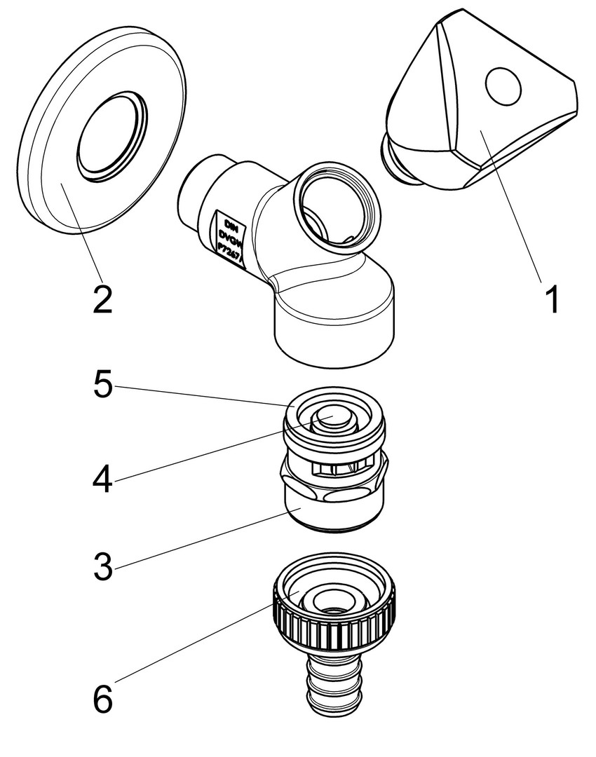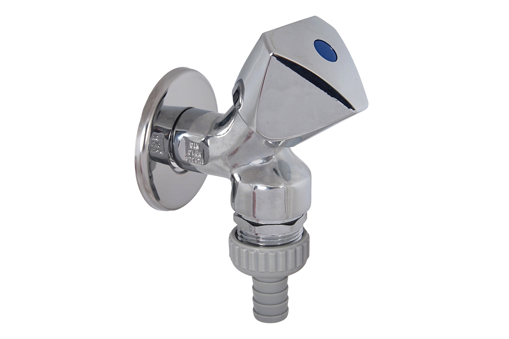 Schlösser Geräteschrägsitzventil 1765 DN 15, 1/2", Dreikantgriff, Schlauchverschraubung, Rohrbelüfter, poliert verchromt